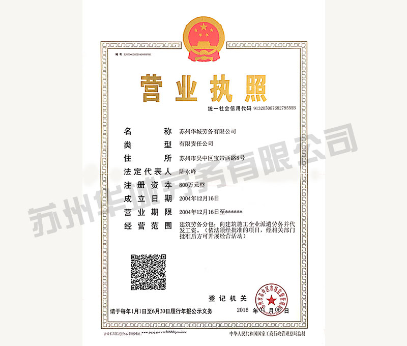 可以承接房屋建筑室內外裝飾裝修業務。公司下設獨立法人單位-蘇州華城勞務有限公司。